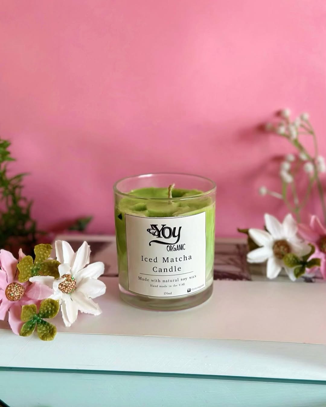 أضيئوا مساحتكم وحواسكم بسحر شمعة الماتشا المثلجة الهادئة. إنها لمسة من الاسترخاء والهدوء، خالية من السعرات الحرارية، تُضفي على أي غرفة لمسة من الهدوء والسكينة!